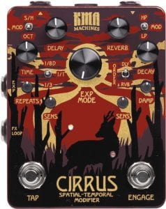 The Janus tremolo and fuzz stomp from boutique guitar effects pedal maker Walrus Audio is a stompbox oddity. Instead of control pots for Tone, Speed, and Depth, it features Tremolo and Fuzz joysticks. The former controls the tremolo effect’s speed and depth while the latter lets you dial in the fuzz effect’s tone and depth. There’s nothing gimmicky about its sound, though; the Janus can dish out both throbbing tremolo and thick, heavy fuzz. You can use both effects independently or together for a wild mix.